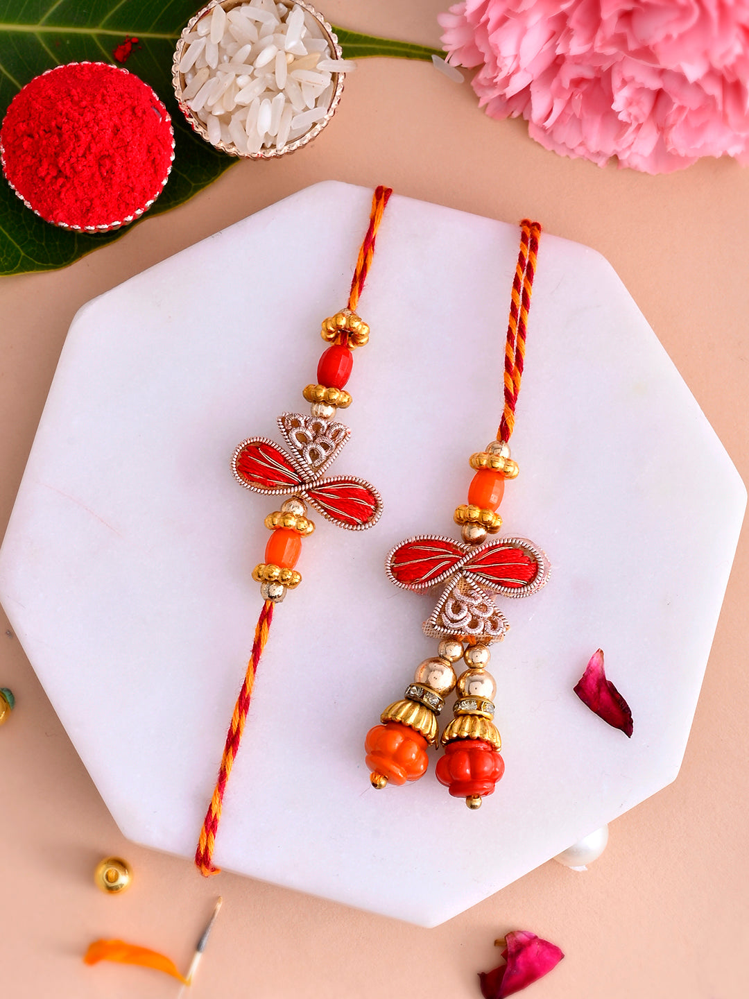 Red Infinity Wired Bead Work Bhaiya Bhabhi Rakhi