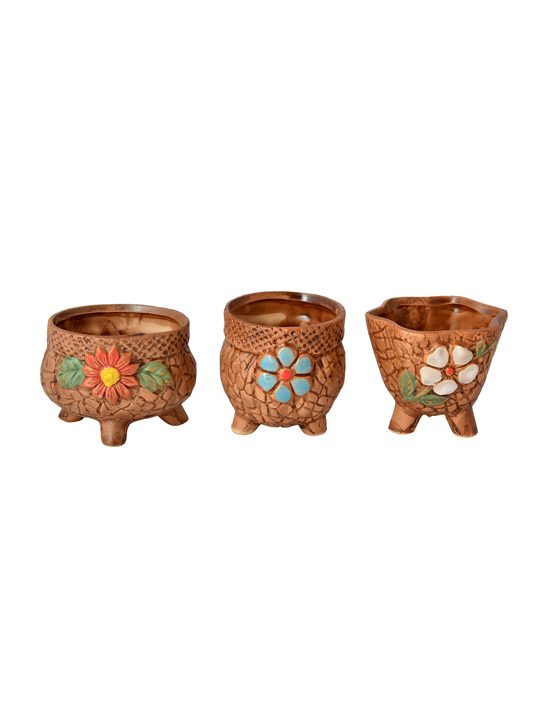 Set of 3 Nature's Embrace Painted Ceramic Planters
