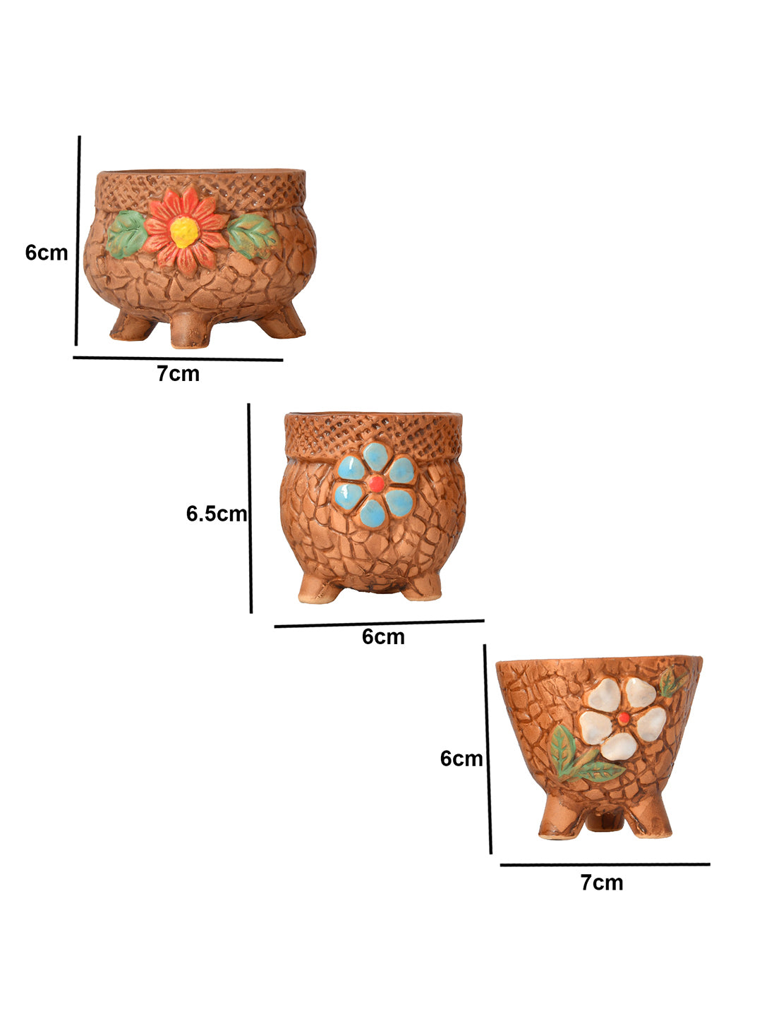 Material: Ceramic Package Content: 3pc Planters This set of 3 ceramic planters add a touch of elegance to any garden or balcony. These versatile planters are perfect for growing a variety of plants, from spices and herbs to beautiful succulents. These earthy planters provide a safe haven for your green companions and each handcrafted masterpiece enhances your plant's allure and its surroundings. Whether you choose to place them indoors or outdoors, they will add a stylish touch to any living space. The sleek and contemporary design of these planters is sure to impress. They are made with high-quality materials, ensuring their durability and sturdiness. With its attractive design, this planter is a great way to enhance the visual appeal of any area. Care Instruction: Wipe with clean & soft dry cloth to remove dust