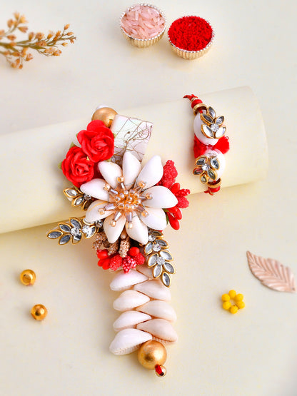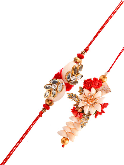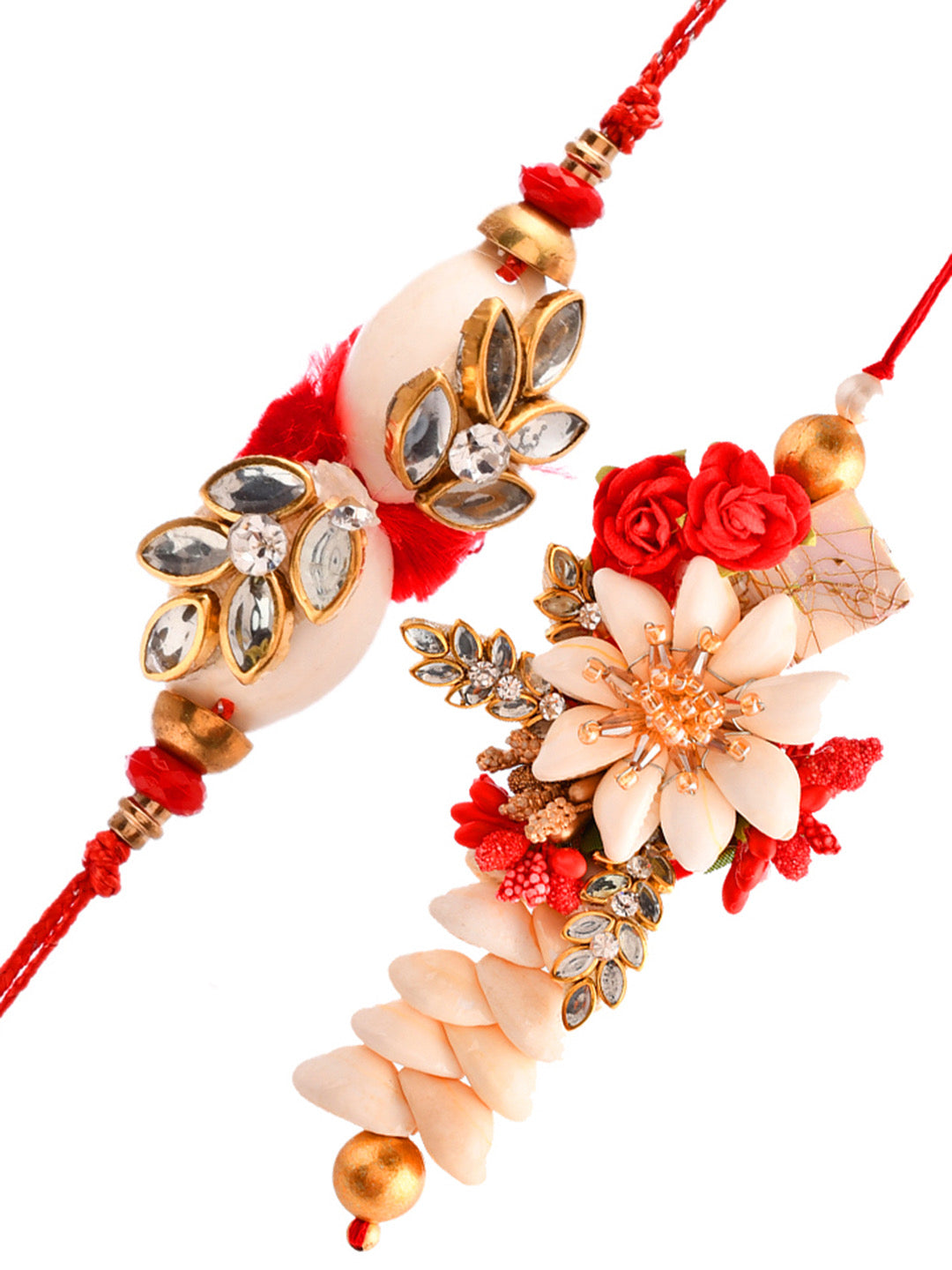 Shell & Kundan Crafted Vibrant Bhaiya Bhabhi Rakhi Set.
