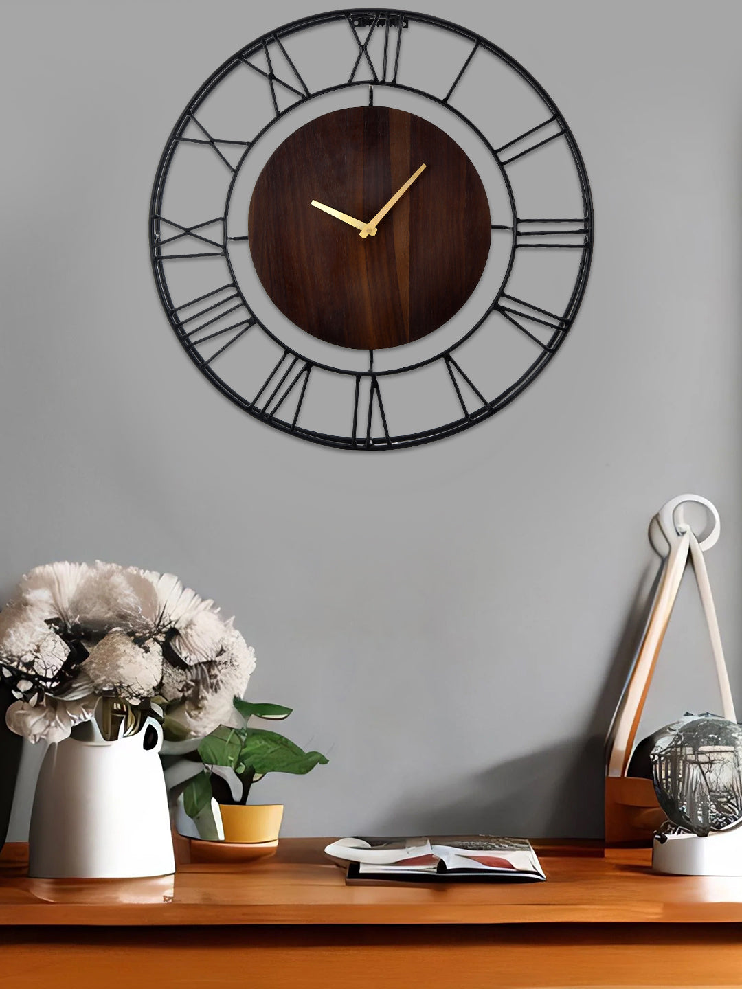 Material: Metal • Embrace the allure of black with our Metal Wall Clock, a captivating addition to your décor that effortlessly blends style and functionality. • A striking combination of sophistication and glamour. The sleek gold hollowed-out frame adds a touch of luxury to any space. The minimalist design and large, easy-to-read Numerals make timekeeping effortless, while the precise quartz movement ensures accuracy. • The black color create a visually stunning effect, evoking a sense of timeless elegance. Disclaimer- • As this product is handcrafted there might be a slight variation in design which is natural outcome and hence makes the product unique. • Battery not Included Care: Wipe off the dirt with a soft cotton cloth