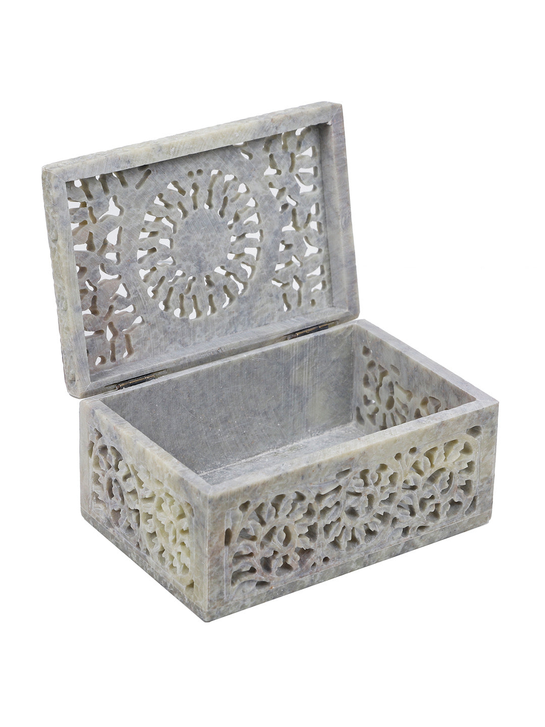 • Presenting a gorgeous Soapstone box with royal hand painted floral designs for creating the most beautiful decor setting.