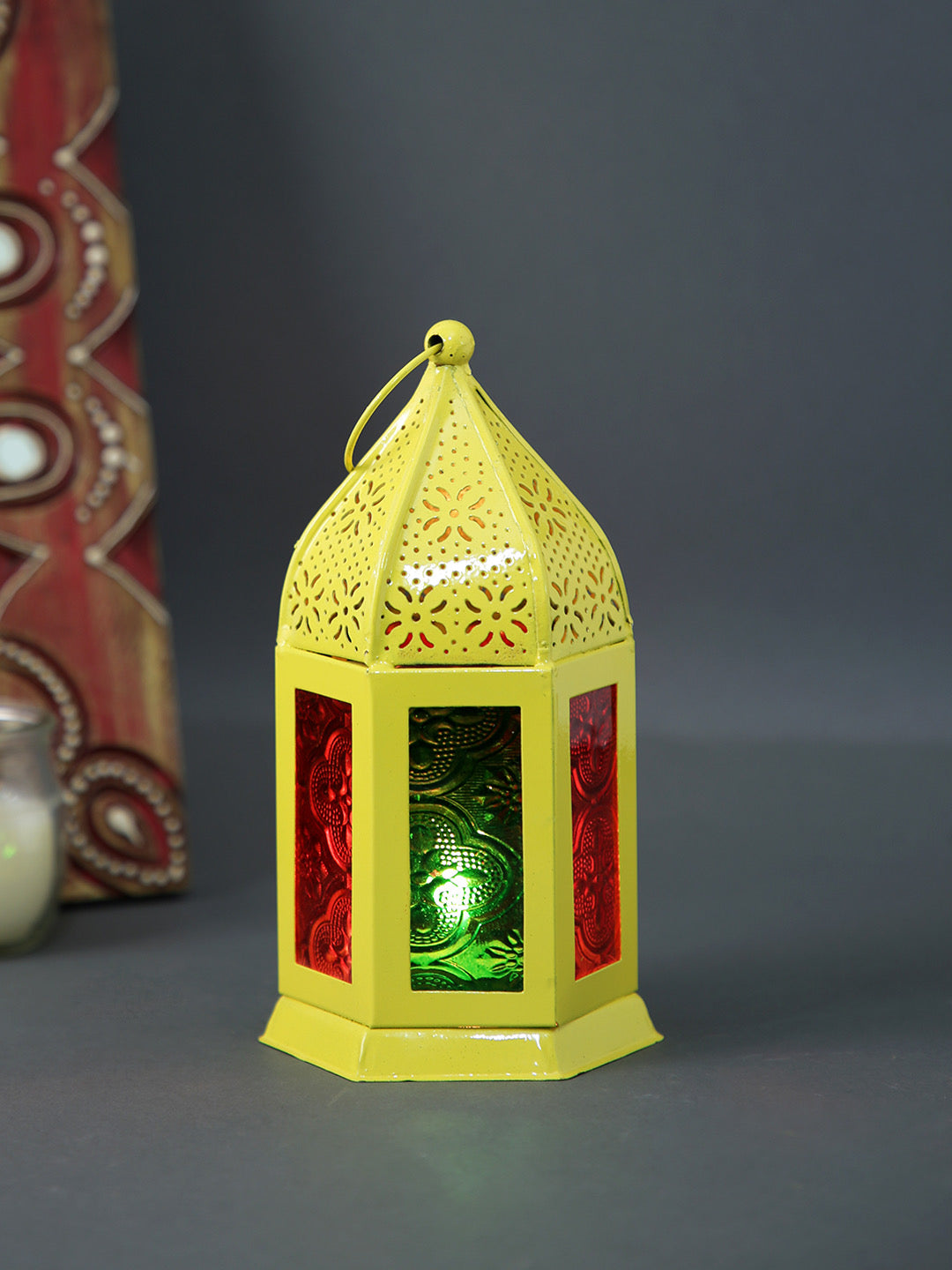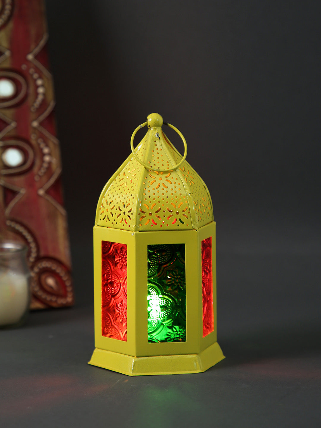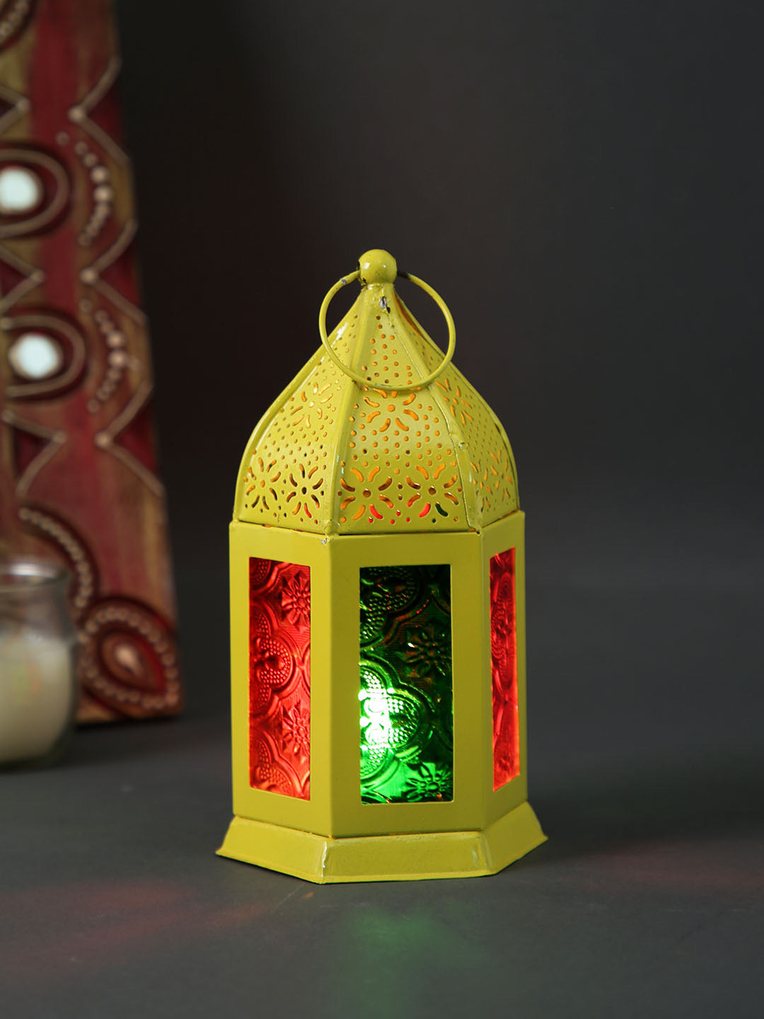 TAYHAA Yellow Metal & Glass Morrocan Lantern