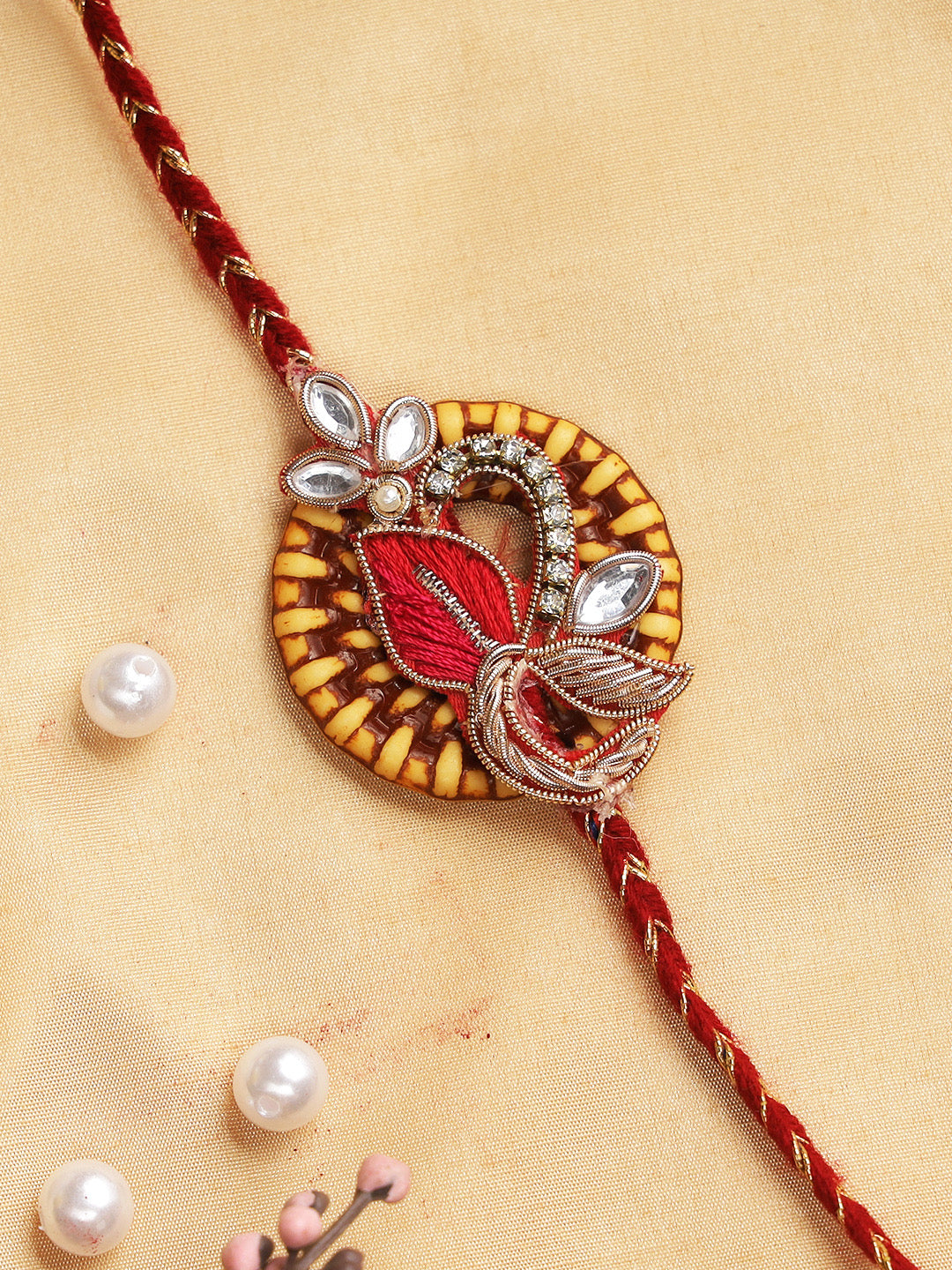Traditional Floral Rakhi with Kundan Meena