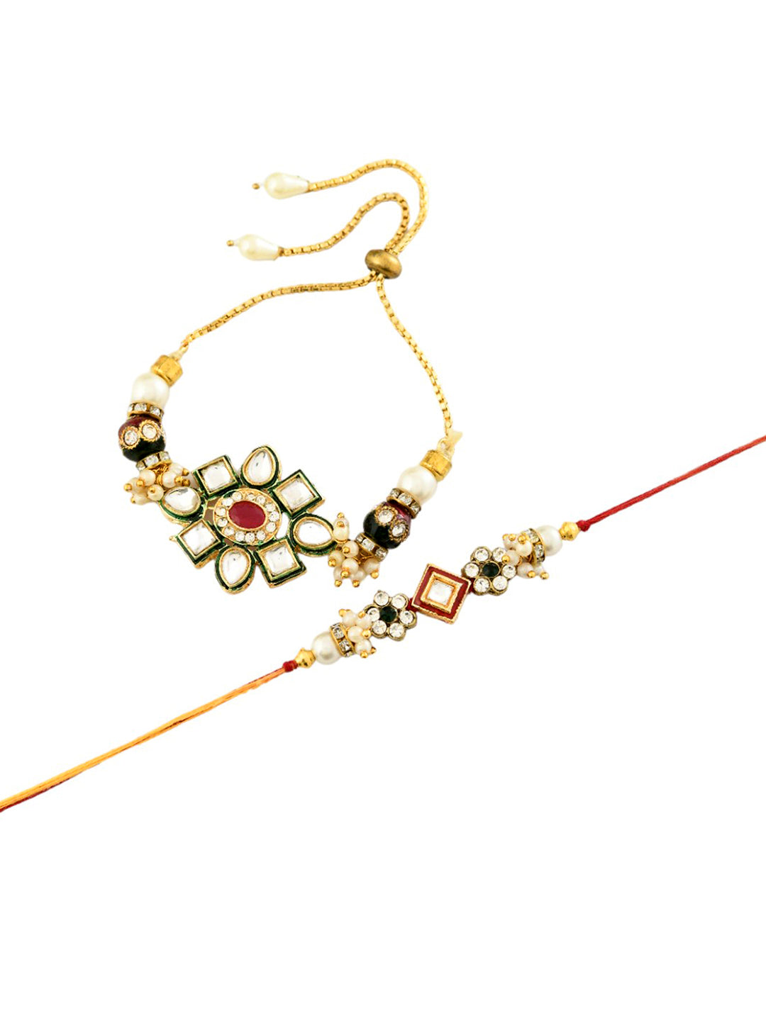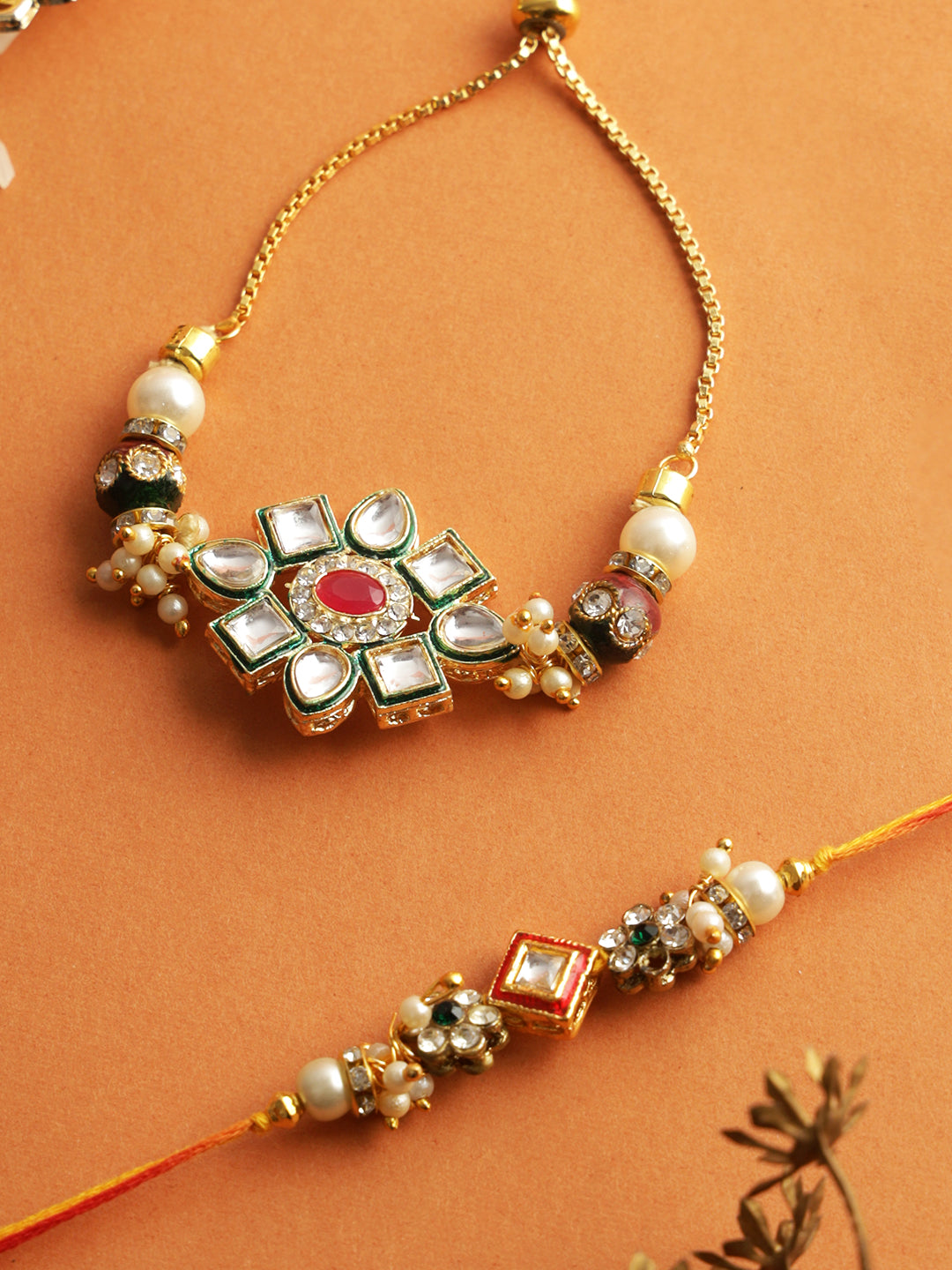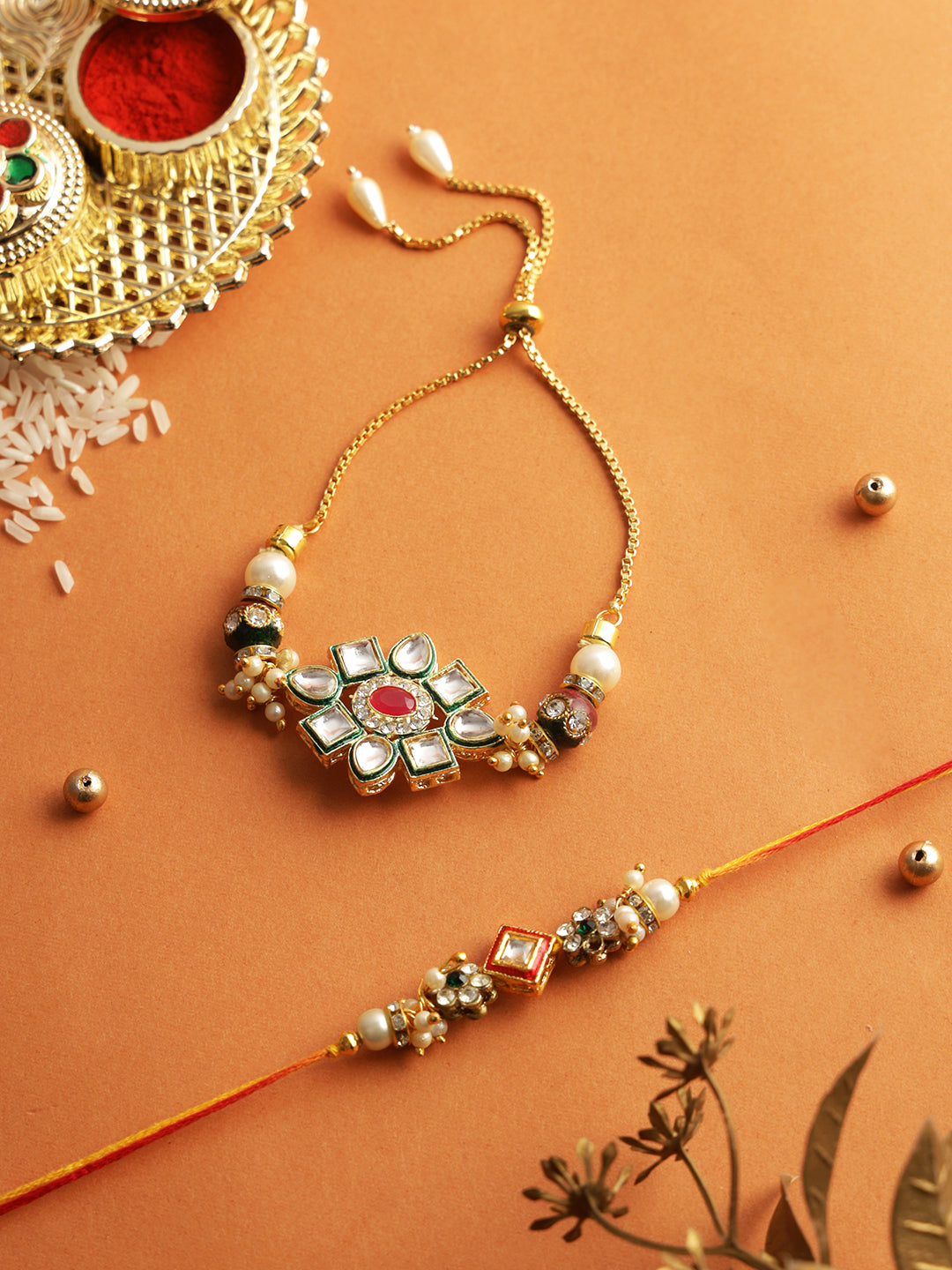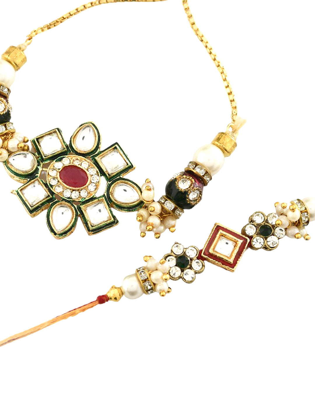 Traditional Kundan Bhaiya Bhabhi Rakhi Set
