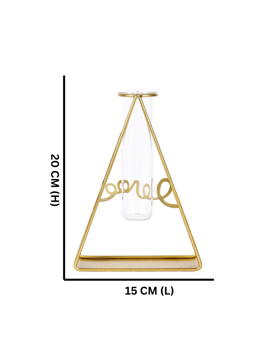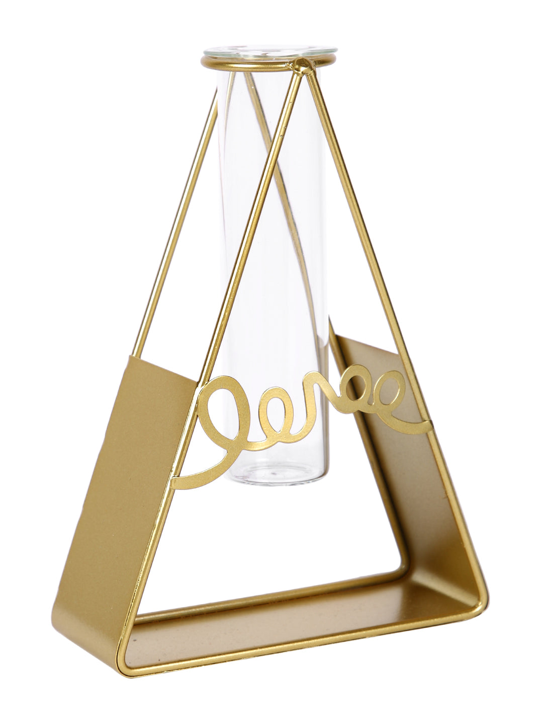 Modern and minimal, this gold wire test tube vase is a stunning piece of wall décor. Its triangular frame adds geometric elegance, while the glass test tube is perfect for holding fresh flowers or hydroponic plants. A perfect gift for décor lovers, plant enthusiasts, or as a stylish housewarming present.