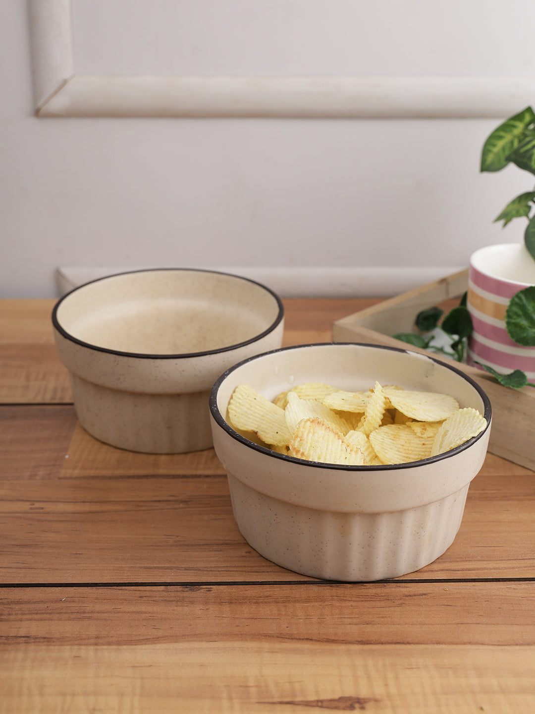 Material- Ceramic Features- • Complete your table setting with this set of beautiful bowls in blue rim and contrasting white porcelain. • Finely handcrafted with precision, these bowls have textured surface with subtle design. • These premium bowls are an elegant addition to your tableware while being microwave and dishwasher safe. Disclaimer- • As this product is handcrafted there might be a slight variations which is natural outcome and hence makes the product unique. • Wipe off the dirt with a soft cotton cloth.
