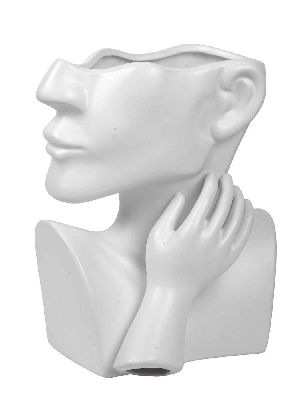 • This minimalistic and human faced ceramic flower vase will give your home a dose of personality.