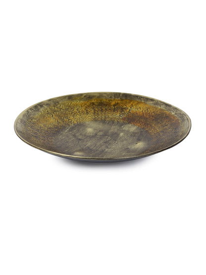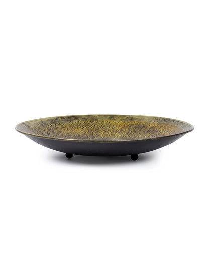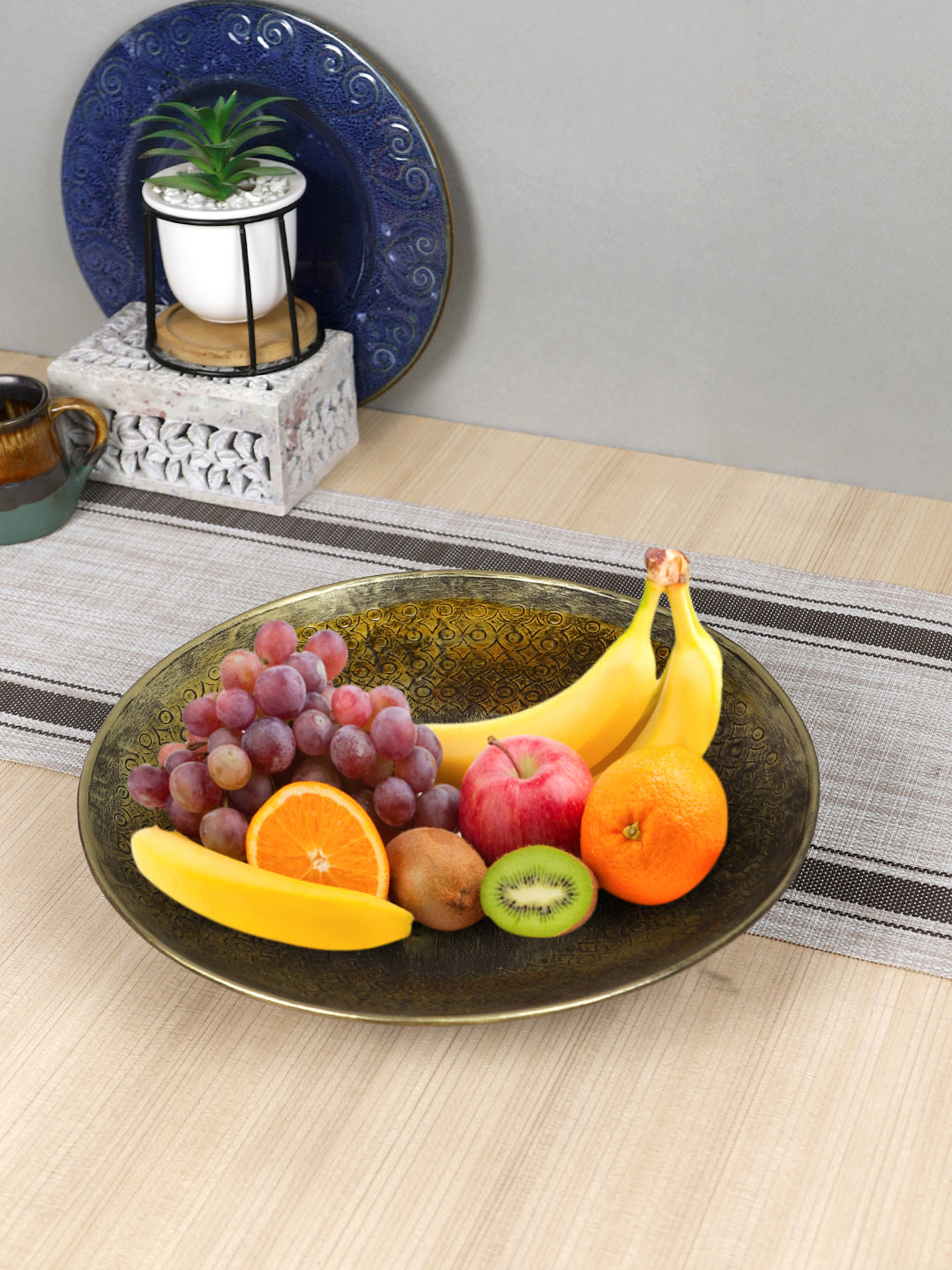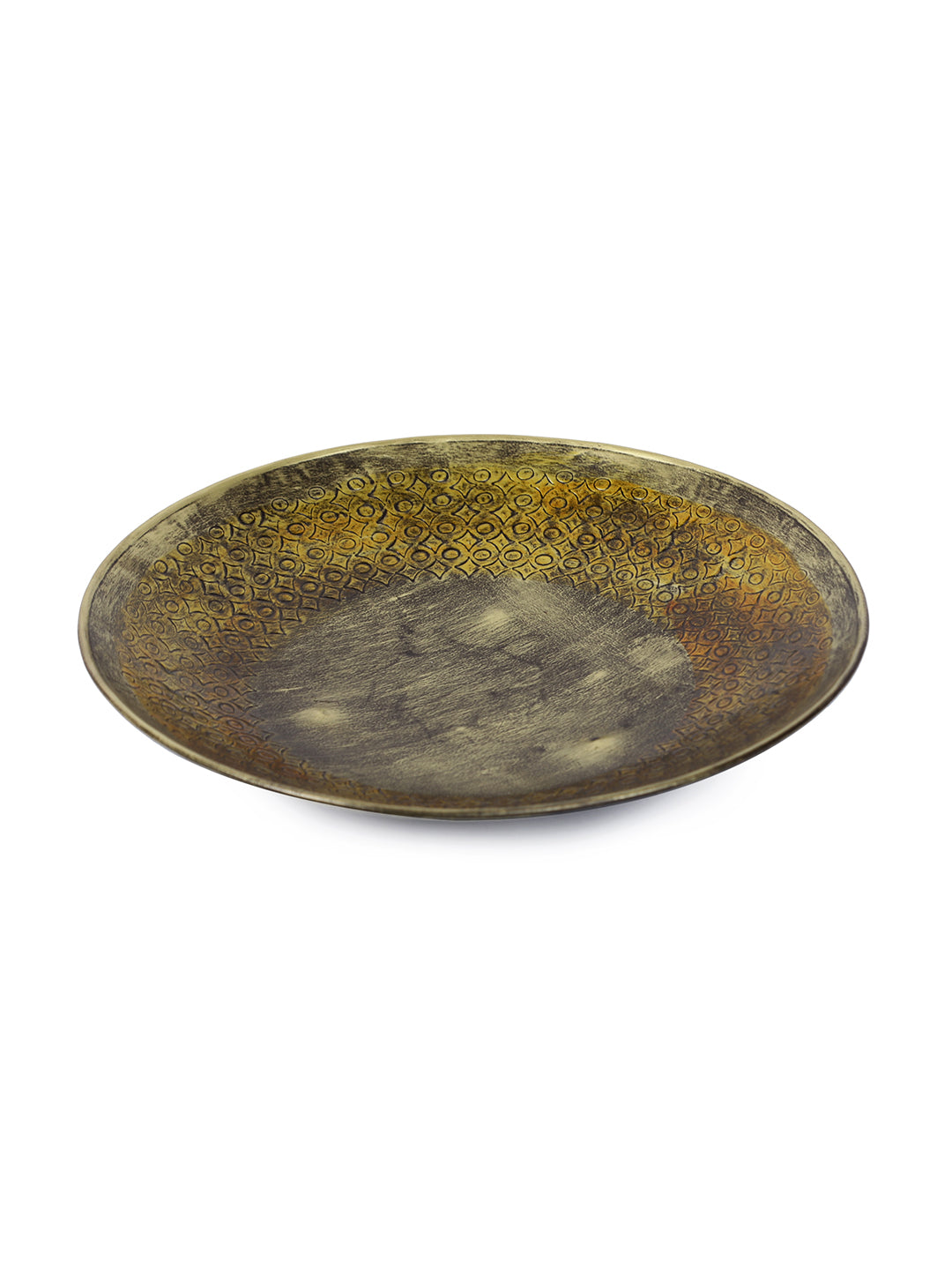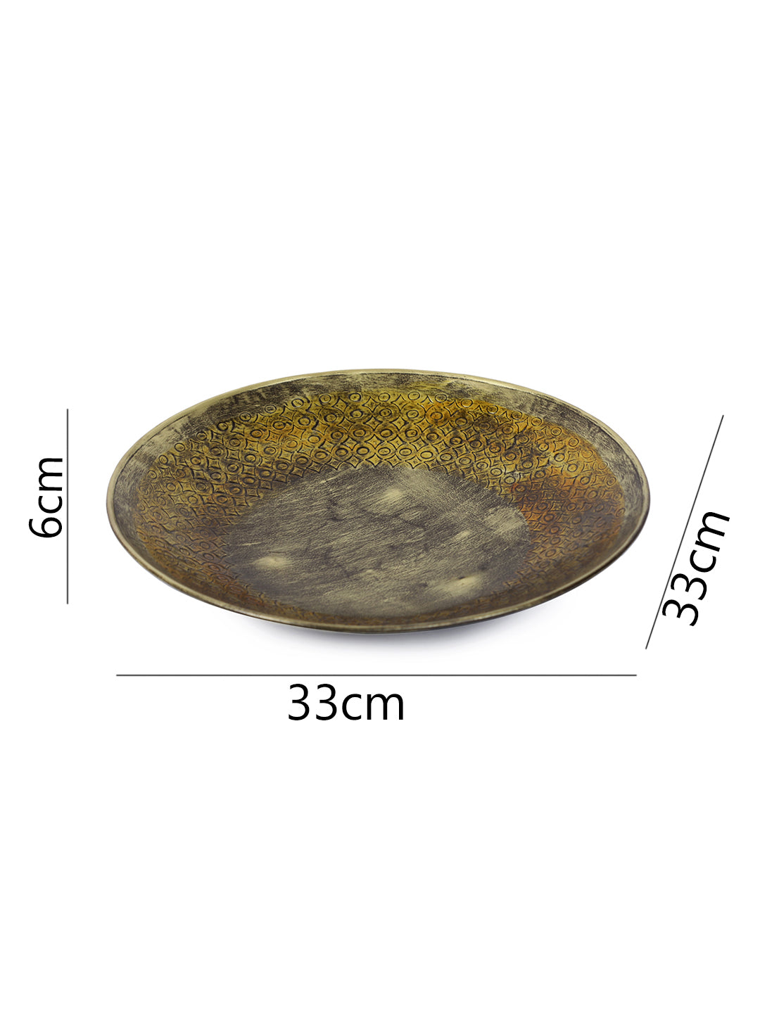 Material:Metal Feature: 1. Looking for an elegant centrepiece for your dining table? The oval platter is an ideal piece to bring light vibrancy to your area. 2. The platter can be used as a showpiece and also hold snacks and fruits. 3. You can also gift this to your loved ones this festive season.